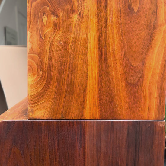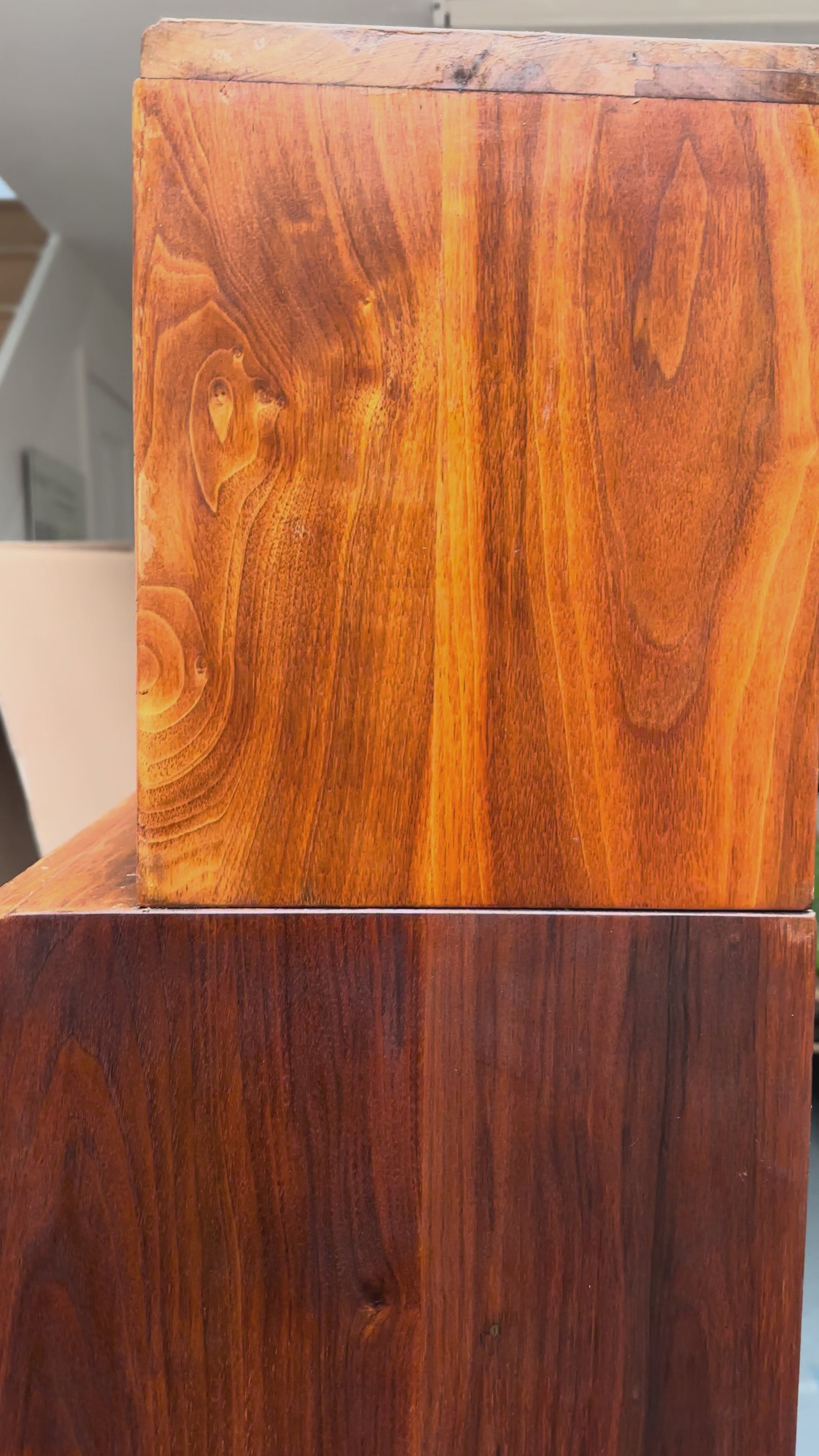 The oak exterior carries the gentle traces of long institutional use — a surface we are preserving rather than erasing. Light conservation is now underway in our workshop to retain that lived character while reviving the tone and utility of the piece.